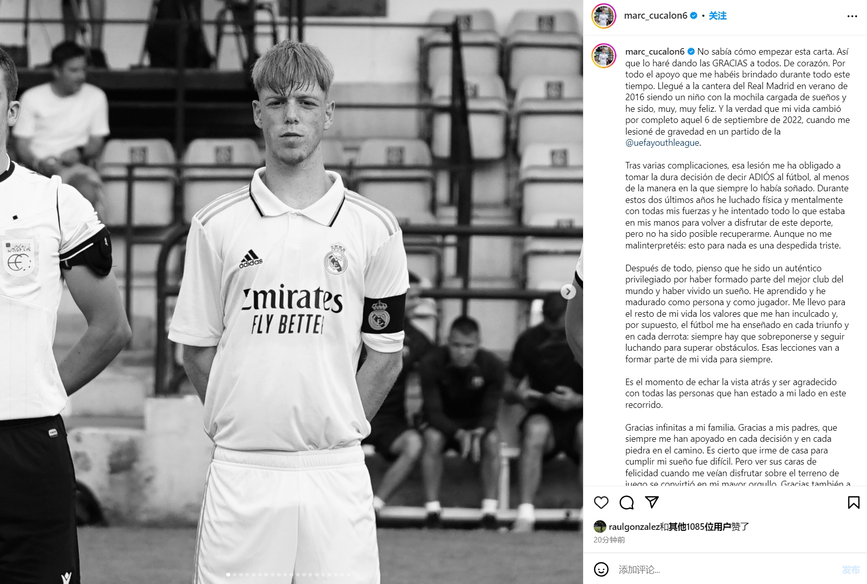 2016年夏天,我带着一个装满梦想的背包来到了皇马青训营,当时的我是如此开心。事实上,2022年9月6日,当我在一场欧洲青年联赛中遭遇重伤,我的生活完全被改变了。