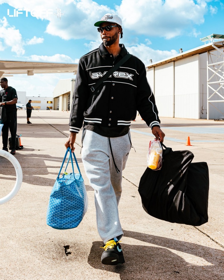 火箭众将登机照:杰夫-格林入冬装 兰代尔却似仍在盛夏