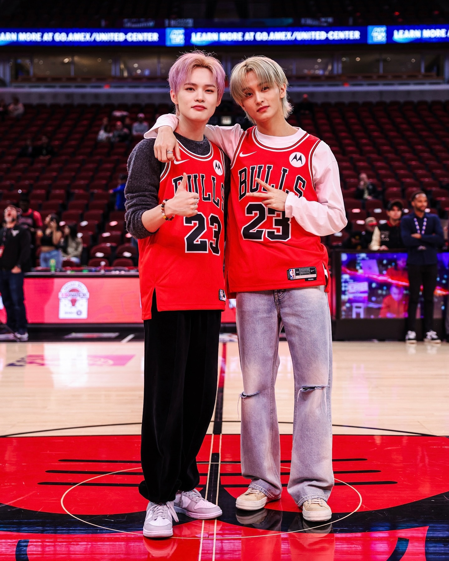 12月09日讯 韩国偶像男团NCT DREAM(Ins粉丝数达1300万)造访公牛主场,队内第一主唱钟辰乐、队内主Rapper及主舞李敏亨与公牛队当家球星拉文合影留念。