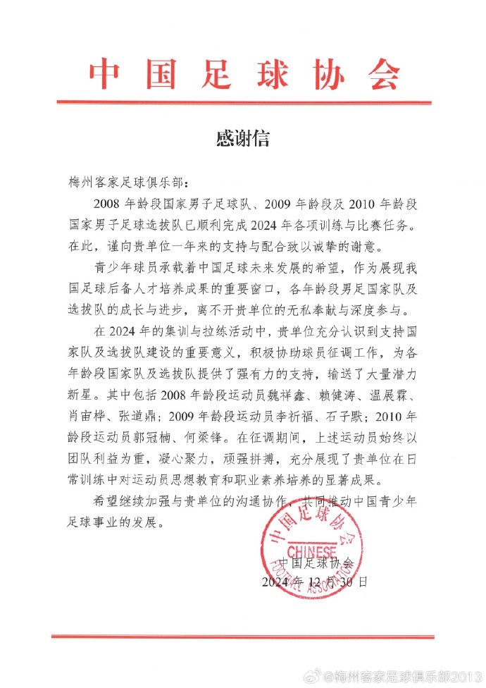未来,梅州客家足球俱乐部将继续与中国足球协会携手并进,为中国足球事业的蓬勃发展贡献自己的绵薄之力。