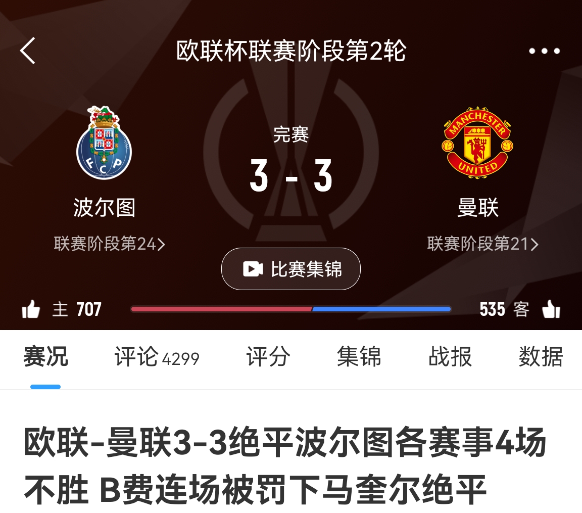 赛后各大英媒集体披露,滕哈赫帅位暂时无虞,但未来一周对阵波尔图(欧冠)和对阵维拉(英超)的比赛将决定滕哈赫命运。