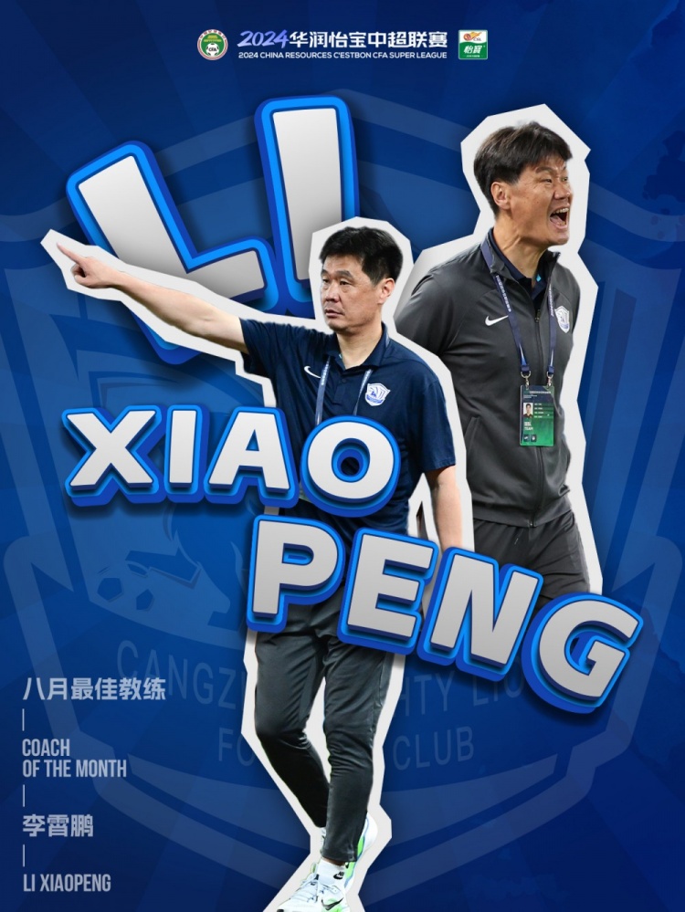 9月17日讯 中超官方公布了8月最佳教练人选,沧州雄狮主帅李霄鹏当选,他率领球队取得2胜1平的不败战绩。