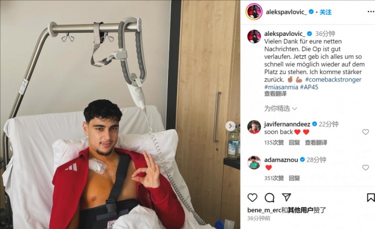 报平安帕夫洛维奇:手术很成功,我会以更强的姿态回归
