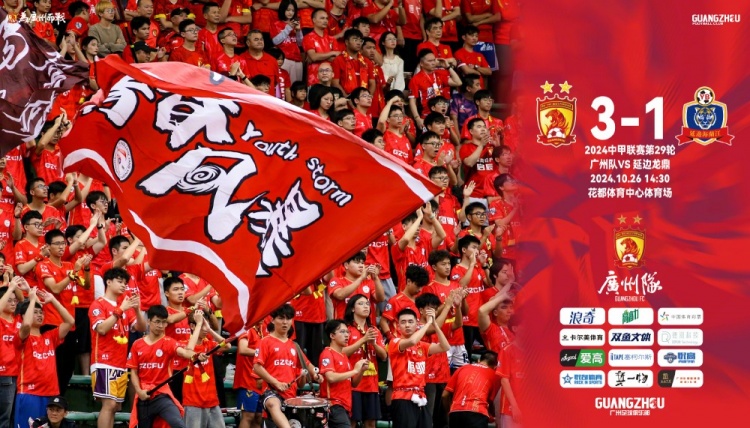 10月26日,中甲联赛第29轮,广州队主场迎战延边龙鼎。上半场第27分钟,徐彬边路传中,阿雷格里亚破门为广州队取得领先。第40分钟,杨浩边路突破传中,吴永强进球扩大比分优势。半场战罢,广州队2-0延边龙鼎。下半场,李金羽替补登场扳回一球,阿雷格里亚进球越位。第88分钟,替补小将白余涛进球将比分优势再次扩大。全场比赛结束,广州队3-1延边龙鼎!