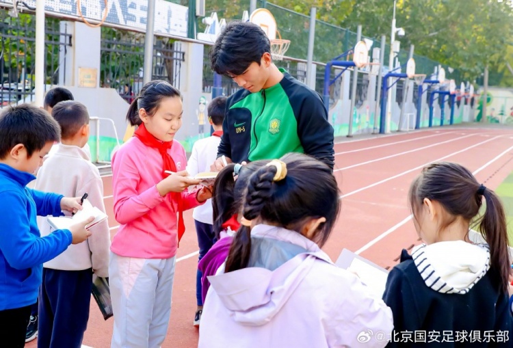 今天下午,北京国安足球俱乐部携手三里屯街道,走进朝阳实验小学开展了“足球进校园”公益活动。北京国安U13梯队教练关安达、杨雨晨,一线队球员方昊、范双杰代表俱乐部出席了本次活动。