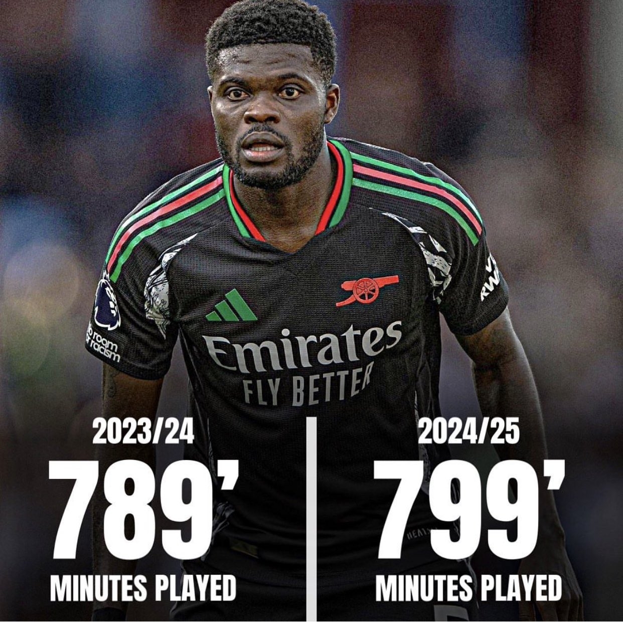 11月01日讯 本赛季英超前9轮,托马斯全勤出战,而且均是首发球员。在前9轮,他总共为阿森纳出场799分钟。