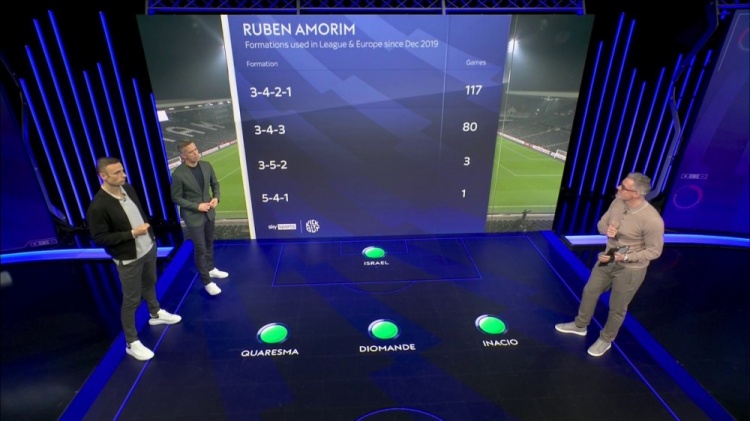11月5日讯 葡萄牙体育主帅阿莫林即将执教曼联,天空体育统计了他担任主帅以来所采用的阵型,联赛+欧战仅有1场比赛未排出3后卫阵型。