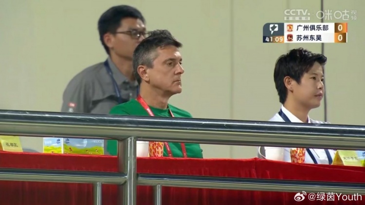 9月15日讯 今晚广州队主场对阵苏州东吴的中甲联赛比赛,U21国青主帅安东尼奥也来到了现场。