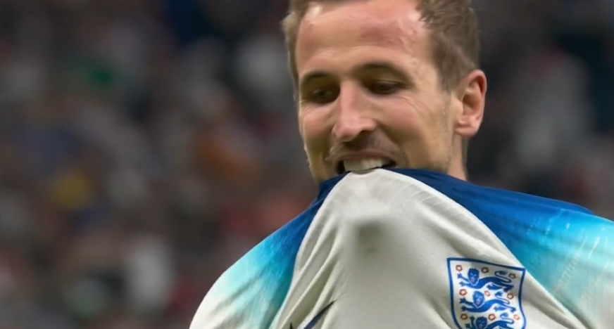 2022年12月11日,卡塔尔世界杯英格兰vs法国,凯恩失点后转播镜头回放,姆巴佩笑得非常开心