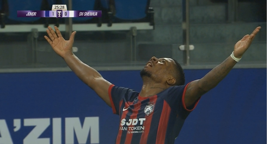 申花客场两球落后!柔佛外援奥布雷贡力压两名后卫头球破门