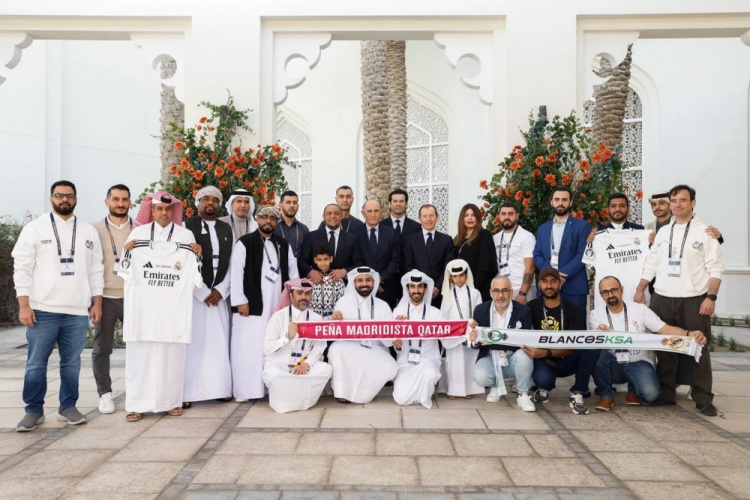 皇马高层&名宿在卡塔尔接见中东、北非球迷代表,合影留念